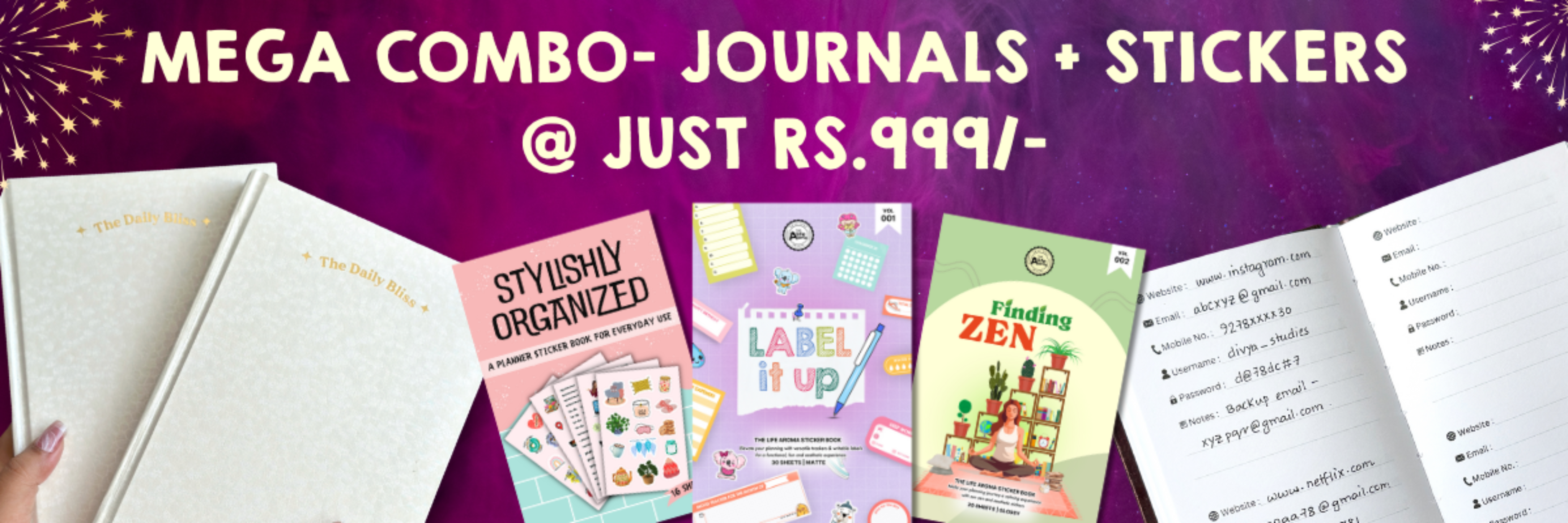 2026 Productivity Bundle - Journal,Password Journal & 3 Sticker Books|